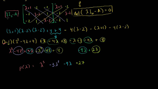Eigenvalues Of A 3x3 Matrix Video Khan Academy from cdn.kastatic.org How to find eigenvectors 3×3? The scipy function scipy.linalg.eig returns the array of. Watch the video explanation about linear algebra: In linear algebra, the eigenvector does not change its direction under the associated linear transformation. I want a free account. I always tried to use the normalisation condition that the square of the three components of the vectors equals one and find another relation from there (or sub in something else). The basic representation of the relationship between a eigenvector and its corresponding value is. For example, if x is a vector that is not zero, then it is an eigenvector of a square matrix a, if ax is a scalar multiple of x.